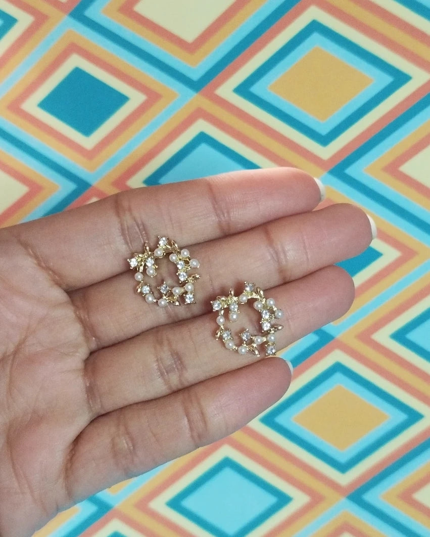 Add a touch of elegance to your look with these exquisite pearl hoop earrings. Designed with delicate pearl accents and shimmering gold leaf details, these earrings capture the beauty of nature in a timeless design. Ideal for weddings, formal events, or enhancing your everyday style. Circular hoop adorned with pearls and gold-tone leaf motifs. Lightweight, secure, and comfortable to wear. Perfect for special occasions or as a thoughtful gift